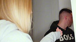 Blonde milf caught on hidden cam getting slammed hard in storage room.