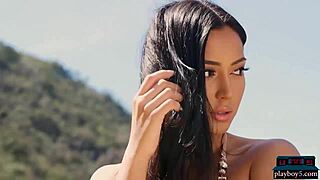 Kay Lovely's Big Tits Burst Out as Latina Strips Naked Outdoors