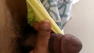 Watch me stroke cock up close until cum covers my small tits