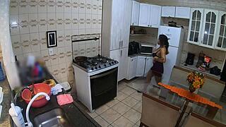 cooking for lover while cuckold husband works