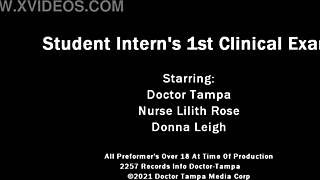 dr tampa gives student intern donna leigh her first clinical exam