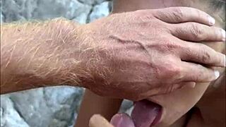 Risky Beach Blowjob Delivers Sloppy Cumshot to Teen Brunette Model in POV Backstage Action