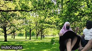 indo couple outdoor public park sex chubby wife moans juicy pussy creampie cheating husband flashing