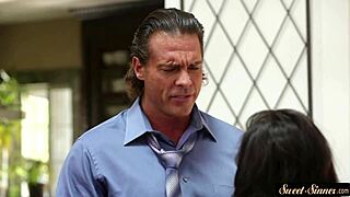 busty teen gets bent over by stepdad in classy roleplay fantasy 😍