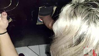 wife sucking cock at gloryhole, wanna join her outdoor fun?