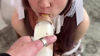 אני עושה קוספליי ולמה דינקלי אינטנסיבי, נאנחת עם צלילי כוס רטובה כגיקית סקסית