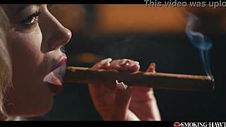 sexy bbw tina snua smokes cork cigarette with deep inhales double pumps and nose exhales