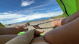 colombian latina fingers juicy gaping pussy lips on beach for stranger pov