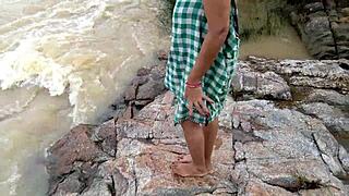 indian stepmom bent over doggystyle anal fucked by river in jungle