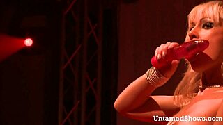 busty milf strips clothes at sex show then rubs her wet cunt hard in amateur tease