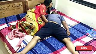 desi kavita rides tatya's cock hard in silky saree fuck session