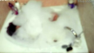 he strips naked in the steamy bathroom, feet glistening as bubbles caress his solo bath body