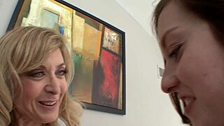 Nina Hartley seduces Ally Evans in slutty lesbian kitchen touch