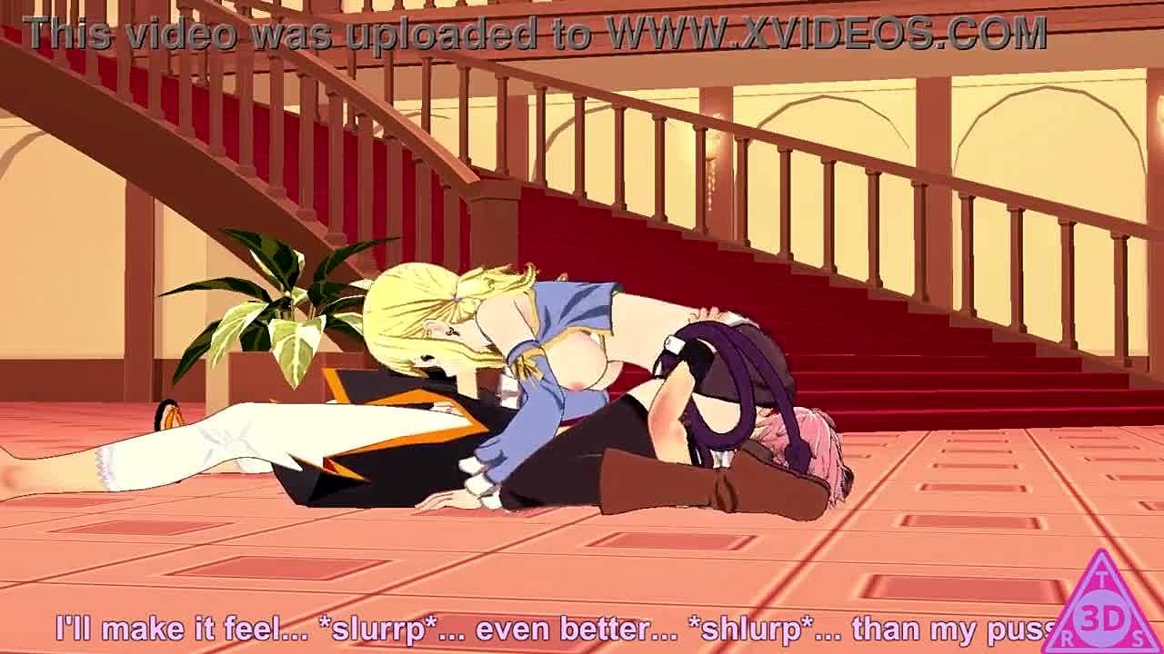 Lucy Natsu from Fairy Tail gets blowjob and cumshot.