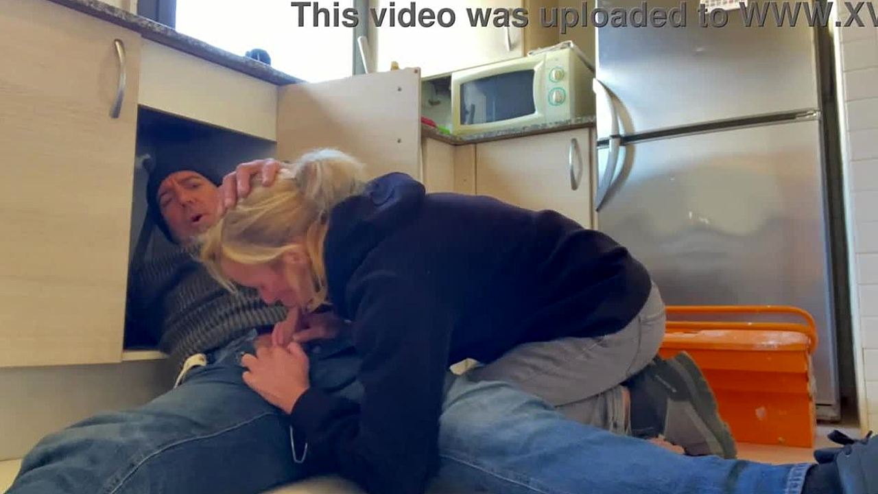 Hot Wife Sucks Plumber's Big Cock in Kitchen with Cum Finish 😏