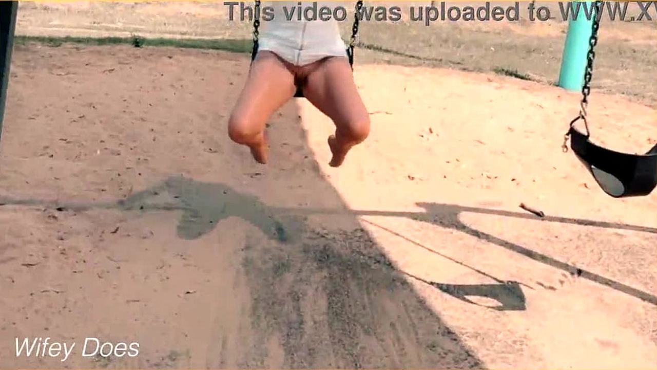 Wife Flashes Shaved Pussy on Swing Outdoors