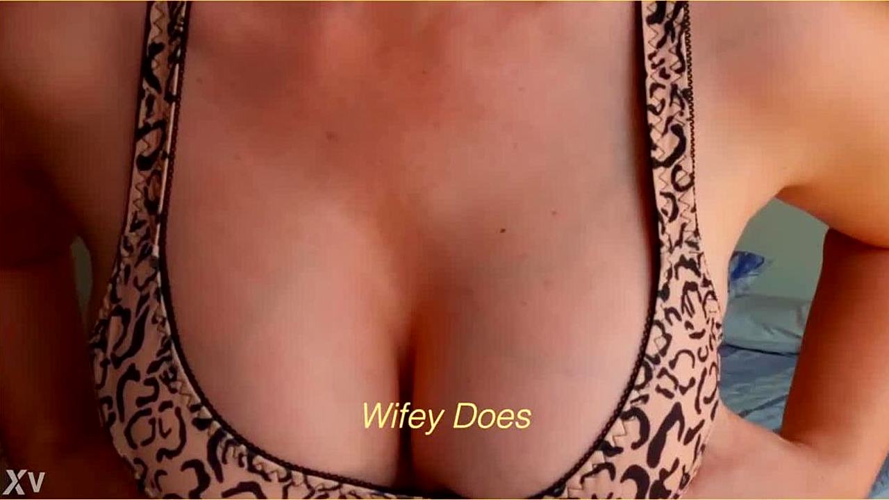 Hot milf in lingerie showing off her big natural tits in leopard bra.