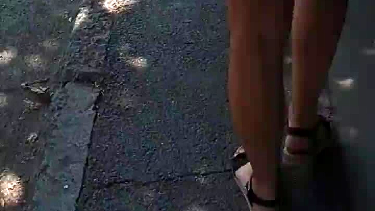 Latina upskirt pussy in public, flashing on the street.