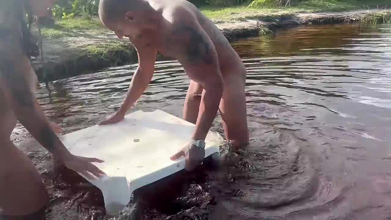This teen is fucking in the middle of the lake with a sexy latina pornstar brunette