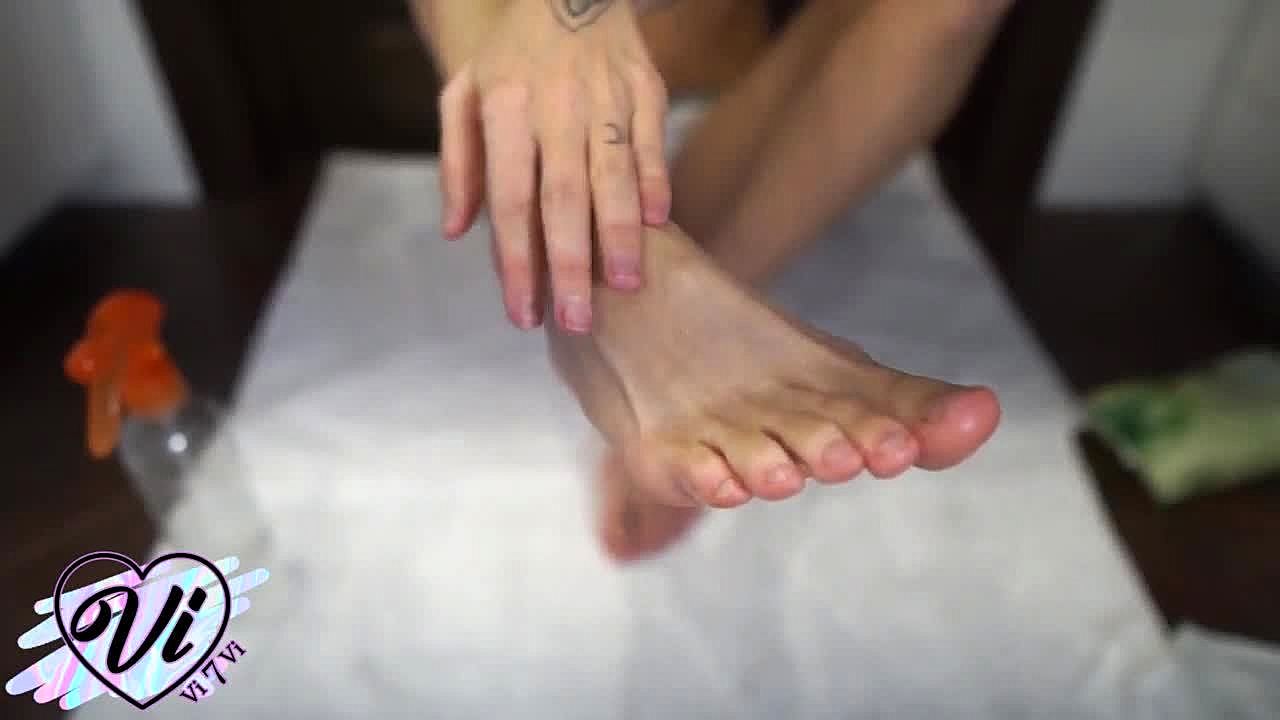 Brunette shows her oiled feet in close-up fetish 😍