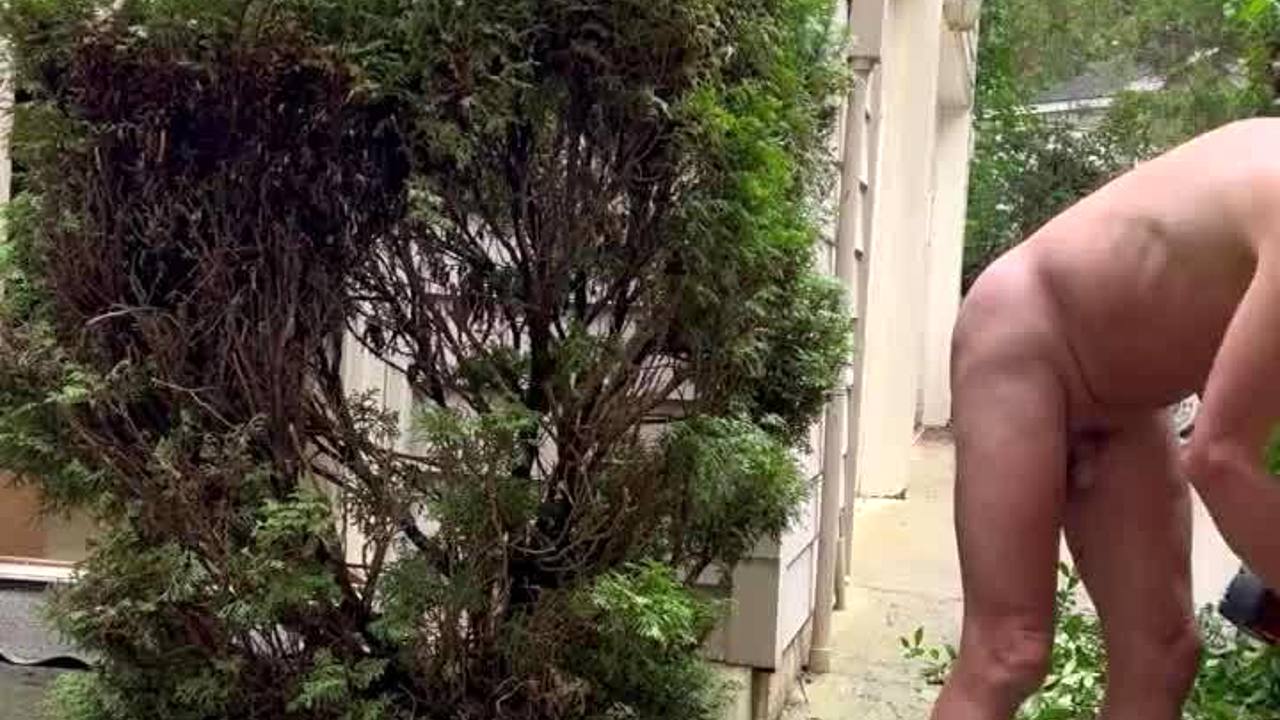 Nakedman15, flash that cock while gardening outdoors
