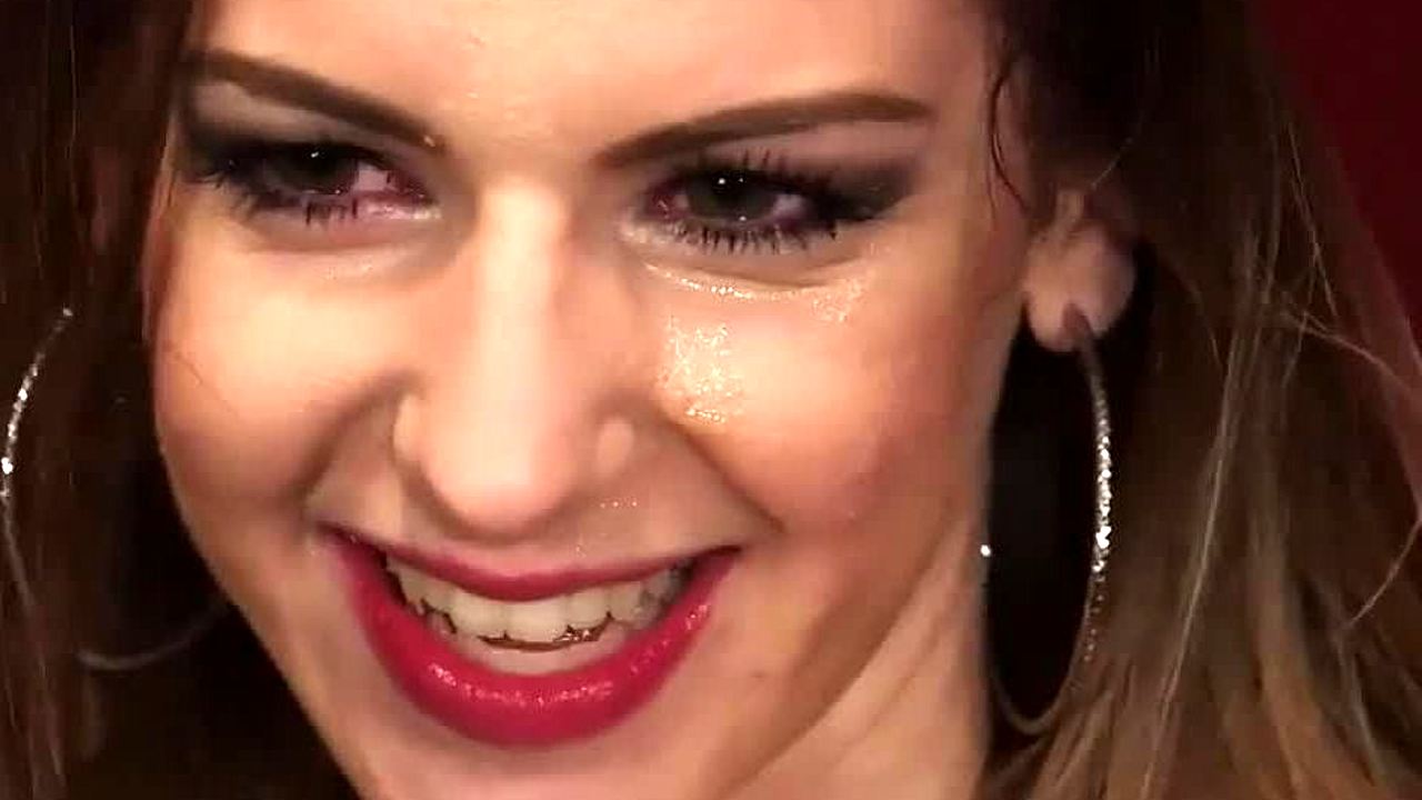 Naughty honey takes a massive jizz load on her face! Swallows every drop!
