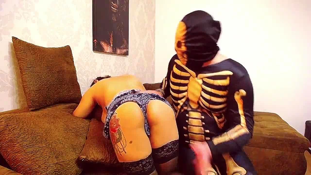 Big Boobs Pregnant Girl in Stockings Punished Hard by Skeleton in Wild Scene