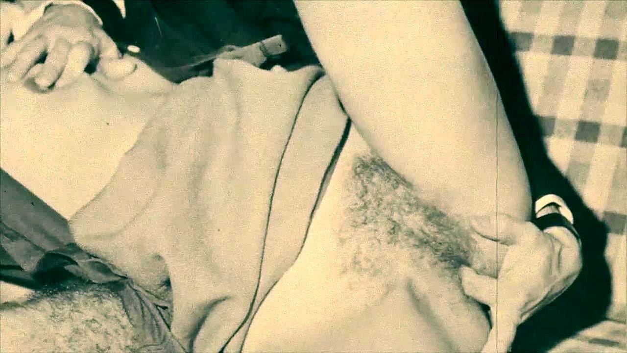 Vintage Taboo Pussy Play with Hairy Retro Babe Bent Over in Doggy Style
