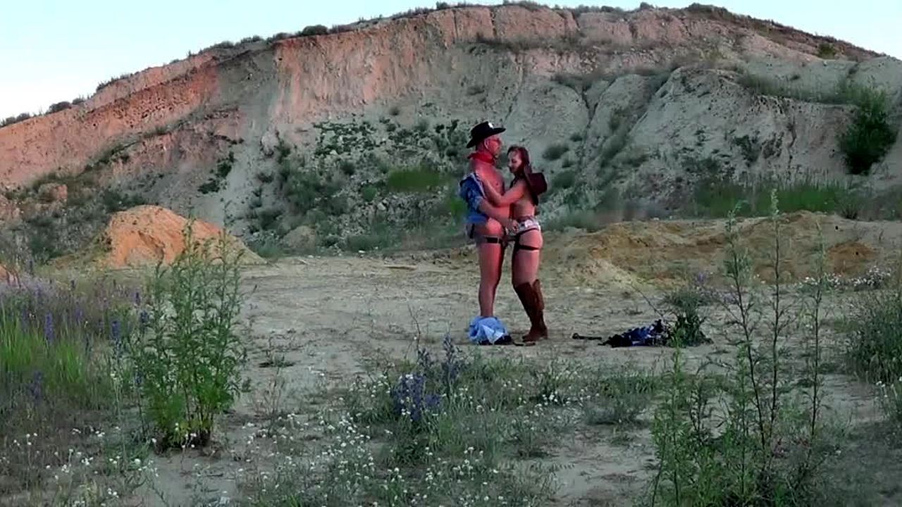 Outdoor cowboy sex with mature woman riding and blowing.