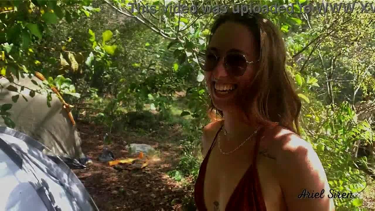 I flash small tits to neighbors in public camping vlog with blowjob and riding.
